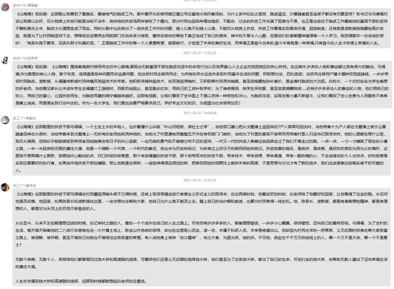 支部书记倪玲表示,“支部精选的寒假作业,两部剧集,用戏剧语言讲清了为什么要扶真贫,真扶贫,讲清了为什么扶贫要先扶智,讲清了从计划经济到有计划的商品经济再到市场经济是基于何种考量,寓教于乐,学到很多东西。”