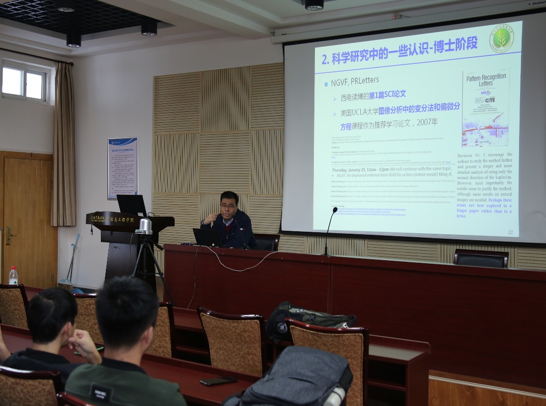 10月23日下午,91成人 宁纪锋教授为91成人 全体硕士生作了"信息领域中科学研究与学术规范的一点认识和体会"为主题的报告。