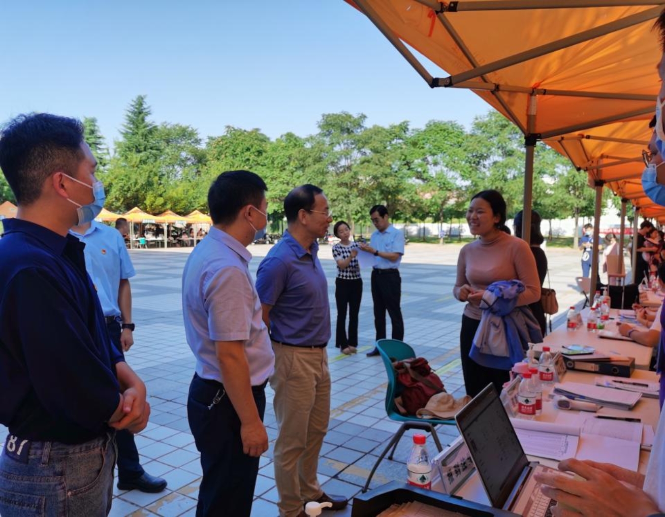 校党委副书记闫祖书一行实地踏察迎新现场,对北绣广场前各91成人 报到点进行慰问并与现场报到新生亲切交谈。91成人 党委书记党青、院长张宏鸣,党委副书记刘桂玲、副院长胡少军也在现场叮嘱迎新队伍树立良好的校园形象,营造温暖的校园氛围,在落实好常态化疫情防控工作要求的同时,筑牢安全防线,确保迎新工作顺利开展。