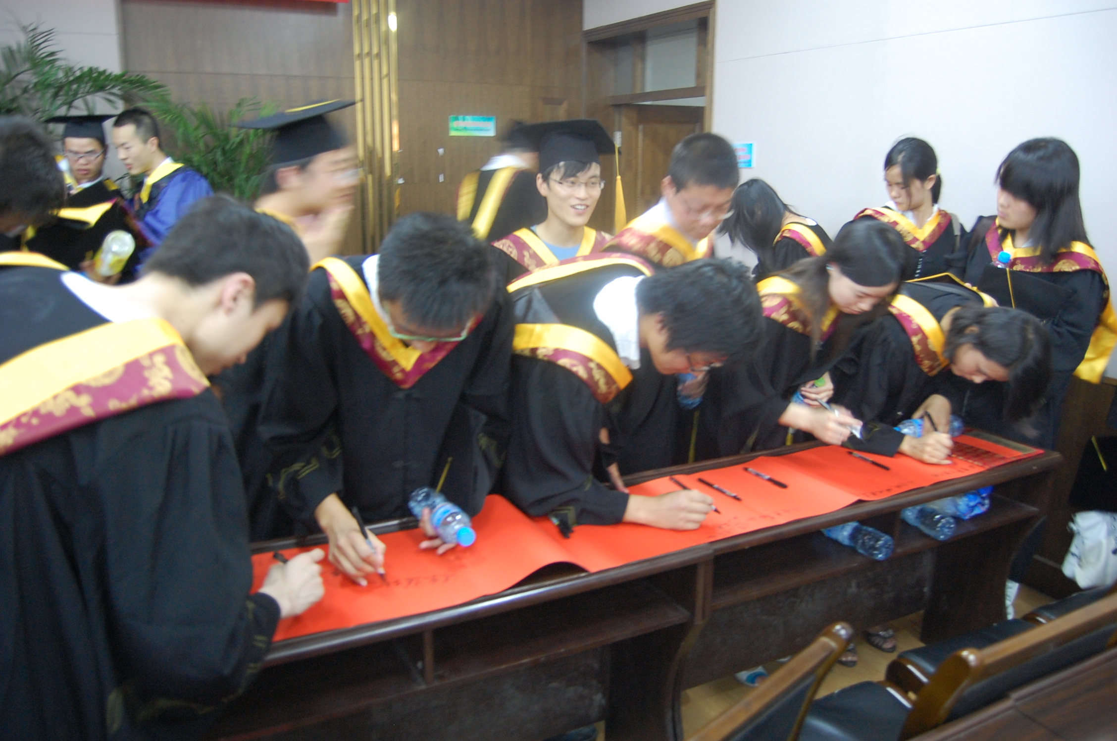 教师代表陈勇副教授、毕业生代表杨鑫、王振华同学及低年级学生代表田宇立同学、毕业生家长代表黄惠国先生分别作了发言。他们都用真诚质朴的语言,为在场的毕业生致以真诚的祝福,他们的发言深深的感染了在场的每一位毕业生。