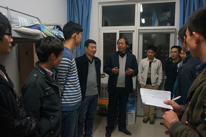 为加强学生宿舍管理,了解学生“文明宿舍创建活动”开展情况,11月19日晚,信息91成人 党委书记宋西德、党委副书记何卫军、学工秘书王淑珍老师,在辅导员的陪同下深入学生宿舍进行检查。