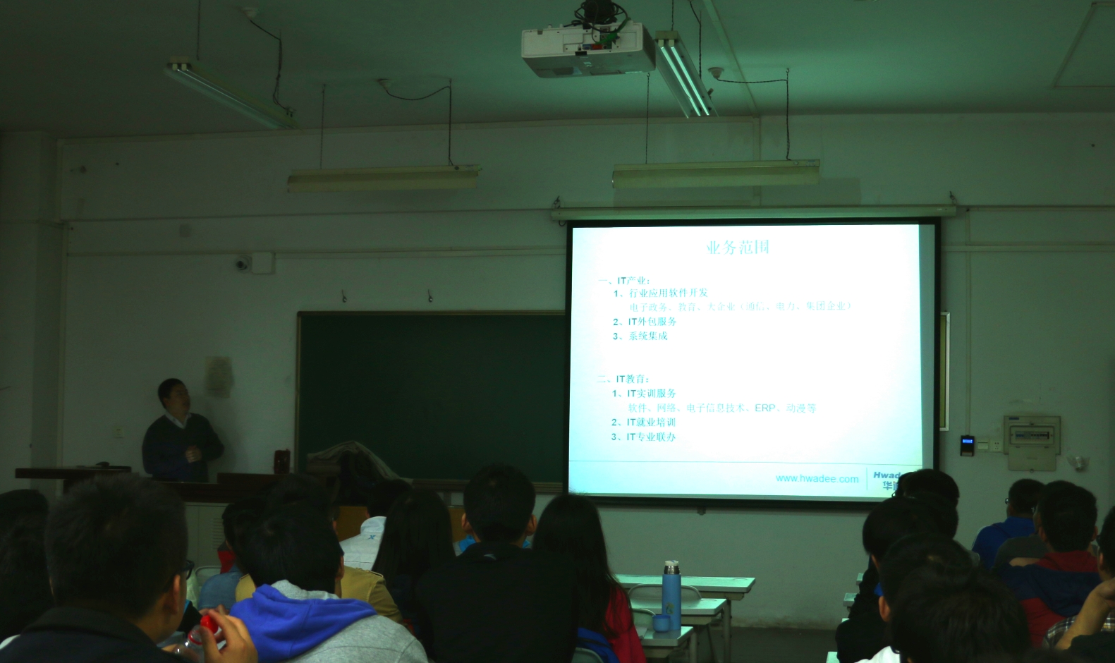 4月15日晚,91成人 在学校八号楼举办了主题为《91成人 本科实训方案介绍》的本科生实训介绍宣讲会,此次宣讲会由工信部高级项目经理、四川华迪研发部总监王强博士主讲。