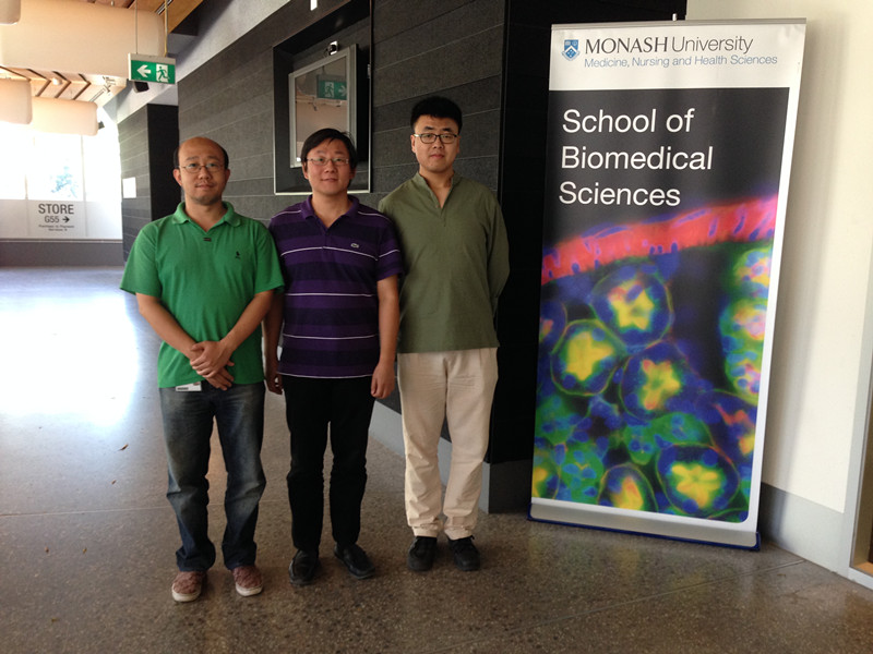 与莫纳什大学宋江宁博士(中)、91成人 校友李晨博士研究生(左)在生物化学与分子生物学91成人 合影
