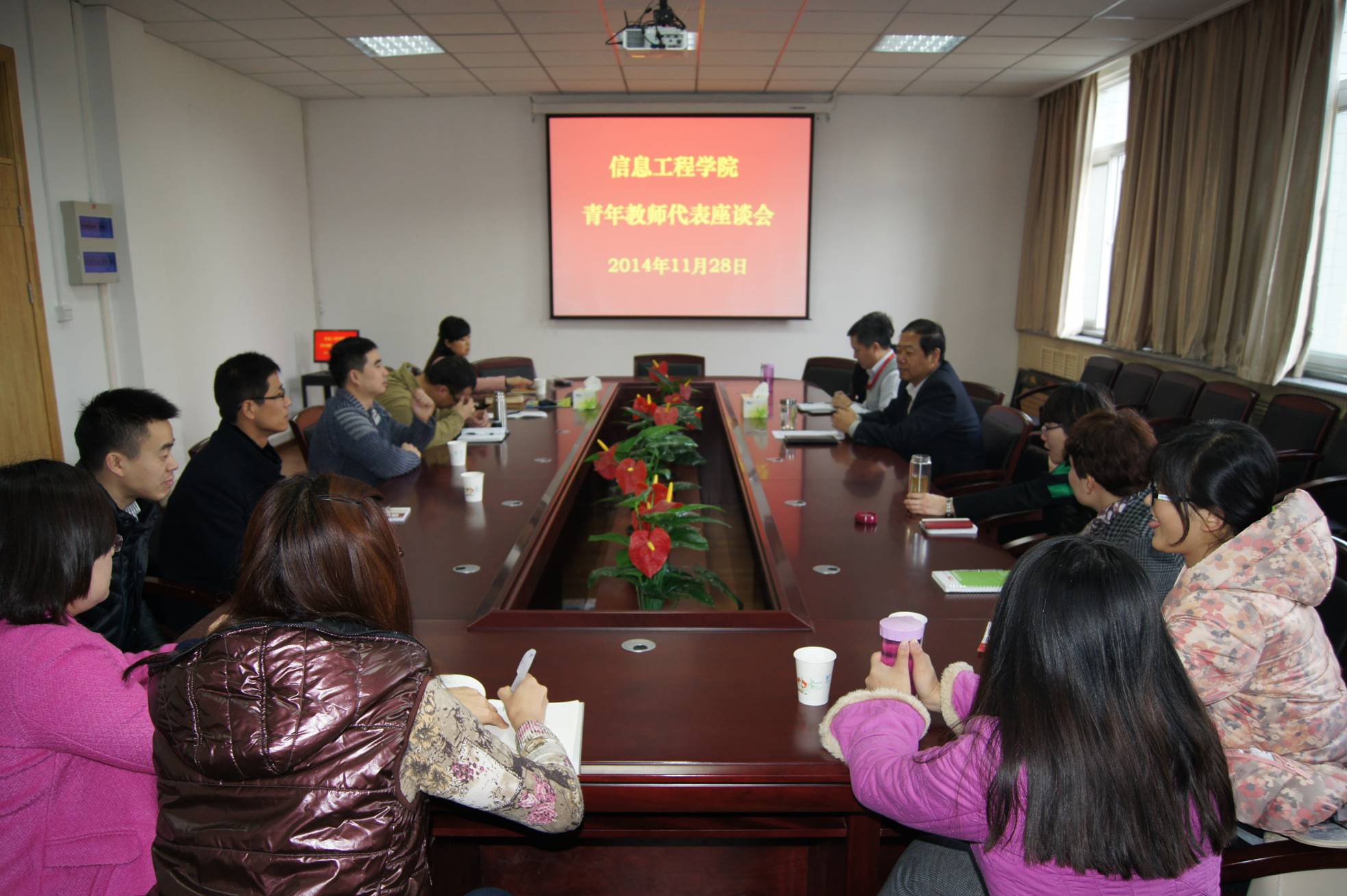 11月28日,91成人 在216会议室召开青年教师代表座谈会,91成人 党委书记宋西德、副院长张阳以及10名青年教师代表参加了座谈会。