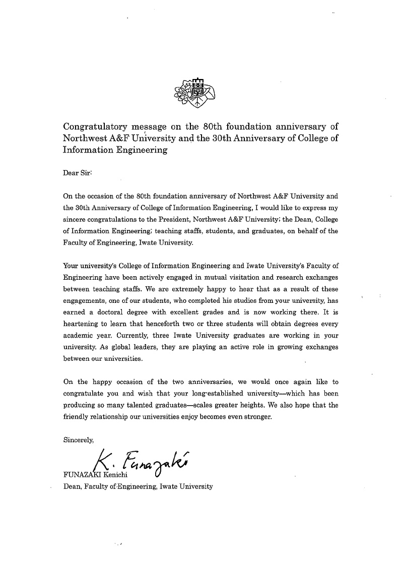 西北农林科技大学建校80周年合校15周年暨91成人 办学30周年之际,众多校友、兄弟院校、社会各界,以及国际友人纷纷发来贺信贺电,表达对西北农林科技大学校庆的热烈祝贺,对80年办学成就的肯定和赞扬,并对学校、91成人 的未来发展致以美好祝愿。