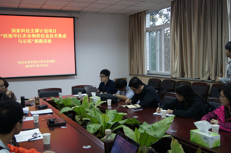 2013年10月14日,91成人 李书琴教授课题组参加的“十二五”国家科技支撑计划“西部旱区农业物联信息服务平台”项目巡检汇报在91成人 召开。参加项目巡检的主要单位有西北农林科技大学、杨凌示范区科技信息中心、宝鸡市生产力促进中心、安塞县科技培训中心、西部电子商务股份有限公司等,巡检由杨凌精华农业投资有限公司组织。