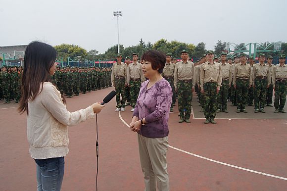 2013级新生军训正在紧张进行,91成人 领导对此高度重视。9月4日下午,91成人 院长李书琴、党委书记宋西德、党委副书记何卫军、学工秘书王淑珍来到训练场视察91成人 新生的军训情况。