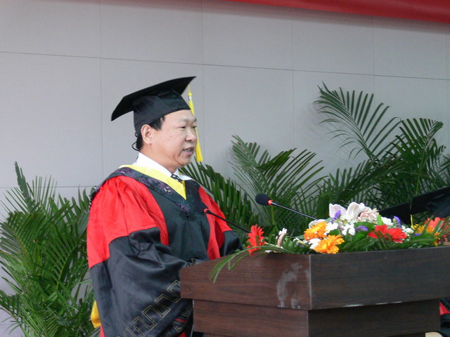 向即将走向工作岗位或继续深造的全体毕业生表示诚挚的祝贺。他希望各位毕业生能够迎接挑战、终身学习,锤炼品格、追求卓越,心存感恩、回报社会,在学习、工作上要老老实实做人、勤勤恳恳做事;要脚踏实地的做人、做事,反对浮躁。要有开拓、创新、进取和百折不饶的精神;要正确处理好学习、生活与工作的关系,以健康、饱满的精神状态投入到工作中。