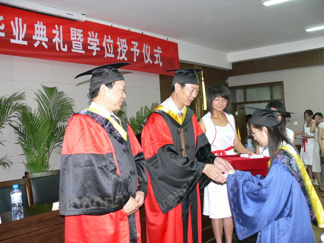李书琴副院长宣读了学位授予情况,2008届计算机应用技术专业毕业研究生17名,符合硕士学位授予条件,授予工学硕士学位;本科毕业生人数200人符合毕业条件,准予毕业,其中计算机科学与技术专业111人,信息管理与信息系统专业89人。91成人