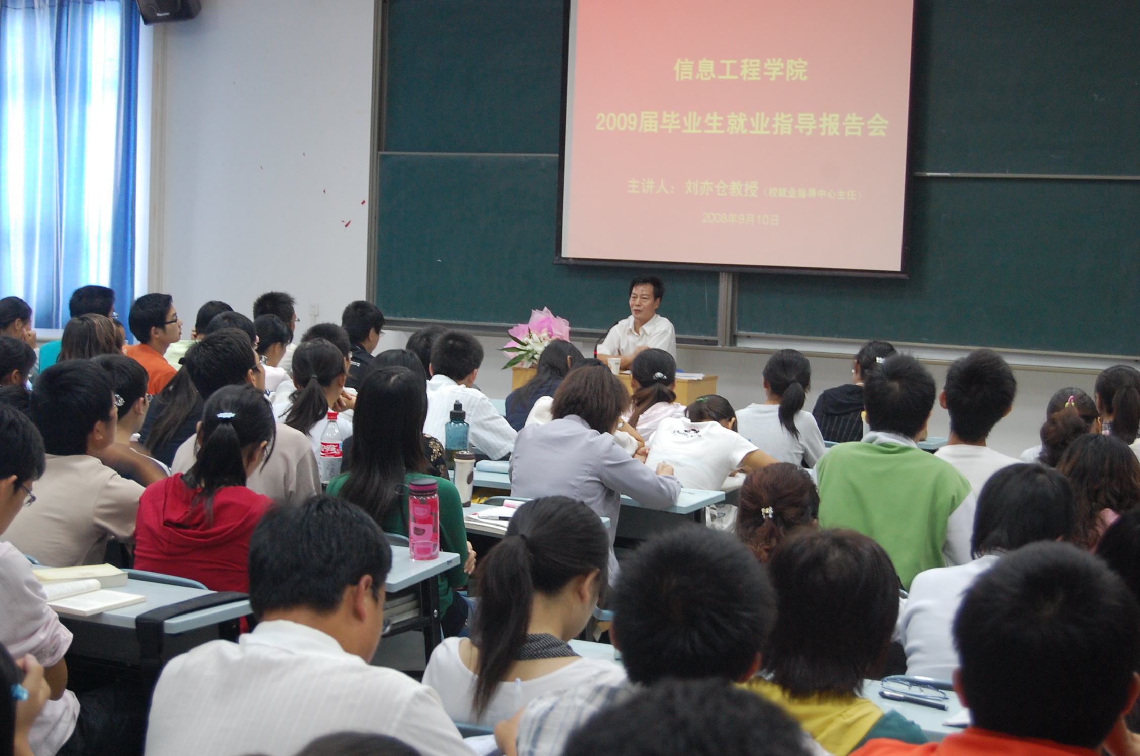 2009届毕业生就业指导报告会,特邀请校就业指导中心主任刘亦仓教授做报告,就业指导中心副主任杜永峰、院党委副书记何卫军、学生工作秘书陶波和200余名2009届毕业生参加了报告会。