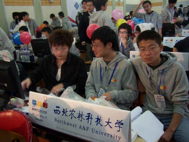 11月12日-15日我校代表队应邀参加了合肥赛区的现场赛,队员由来自06级计算机科学与技术专业的曹柯、李浩、李梦楠组成,这是我校首次参加这一国际著名赛事的现场赛,通过比赛锻炼了队伍,学习到了其他著名大学的先进科学的ACM组织、训练的经验,为进一步开展好我校的ACM活动奠定了基础。