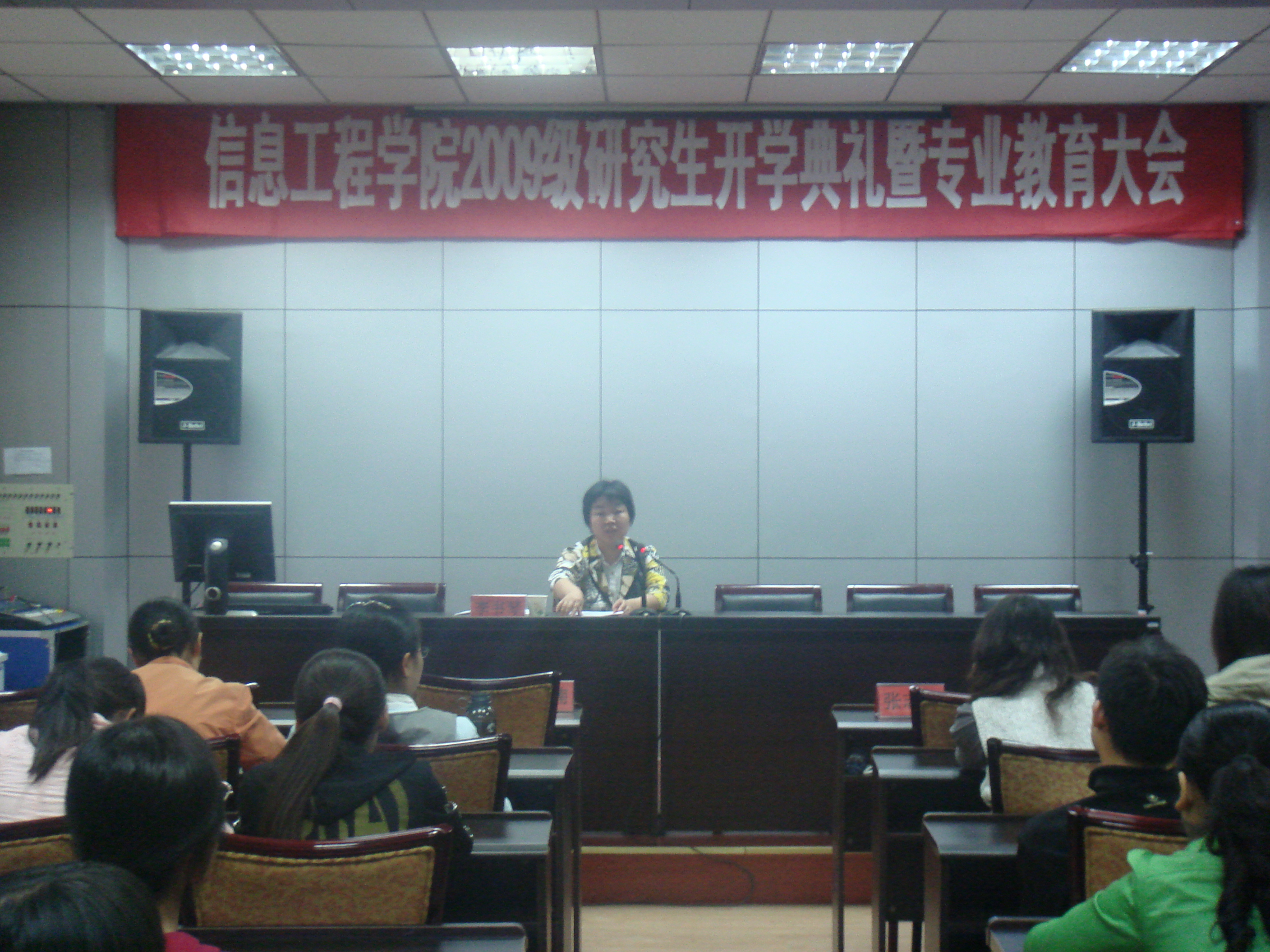 在二楼多功能厅隆重举行2009级新生开学典礼暨专业教育大会。院领导樊世明书记、主持工作副院长李书琴、研究生指导教师代表、研究生秘书范芳娟、2007级、2008级研究生及2009级新生一起参加了开学典礼。大会由综合办公室主任刘桂玲主持。
