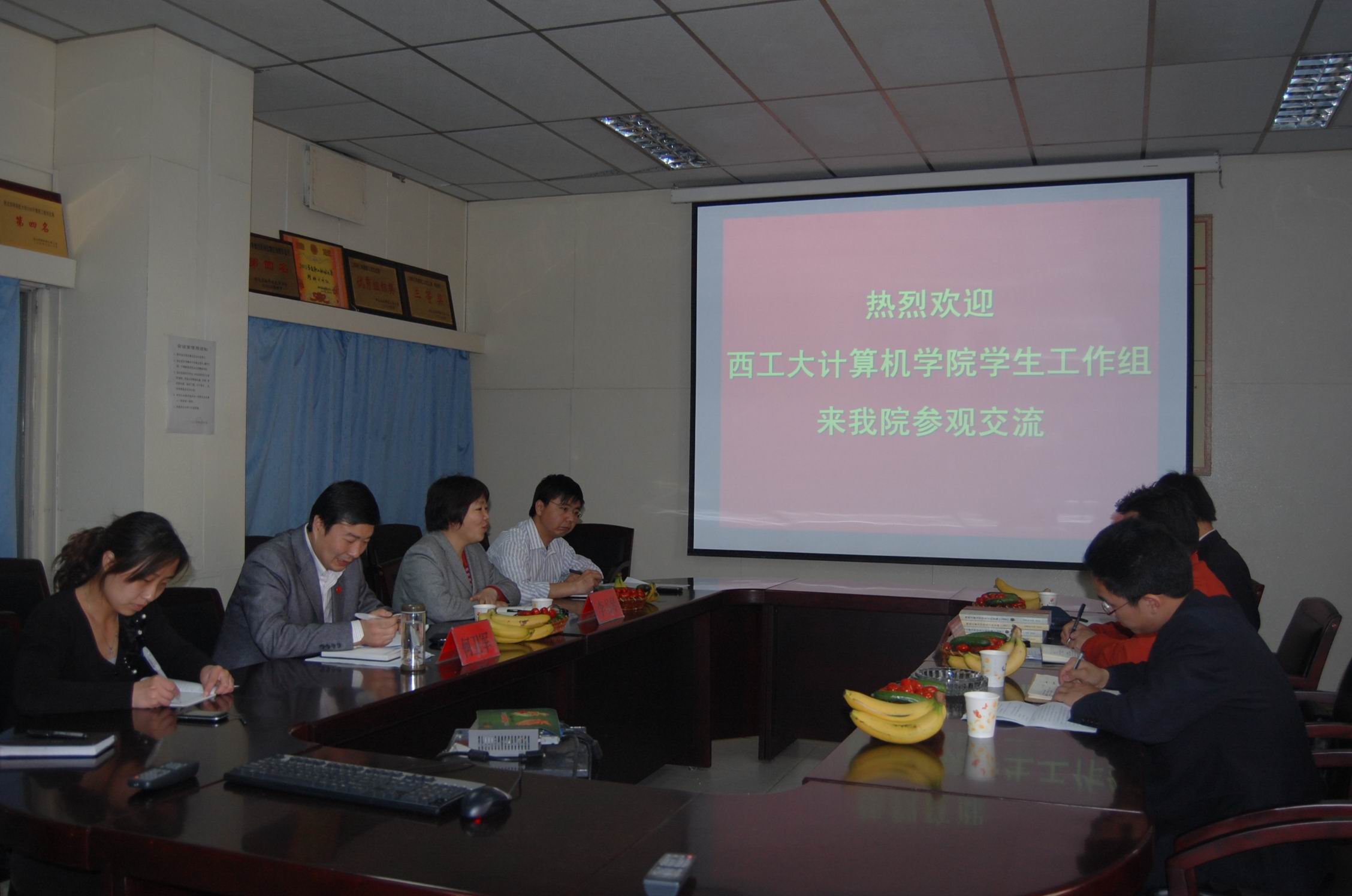4月16日上午,西北工业大学计算机91成人 党委副书记宫健带领政工干部和24名维族学生来91成人 考察交流。院长李书琴教授、91成人 党委副书记何卫军参加座谈会,并与西工大计算机91成人 政工干部进行了广泛的交流。
