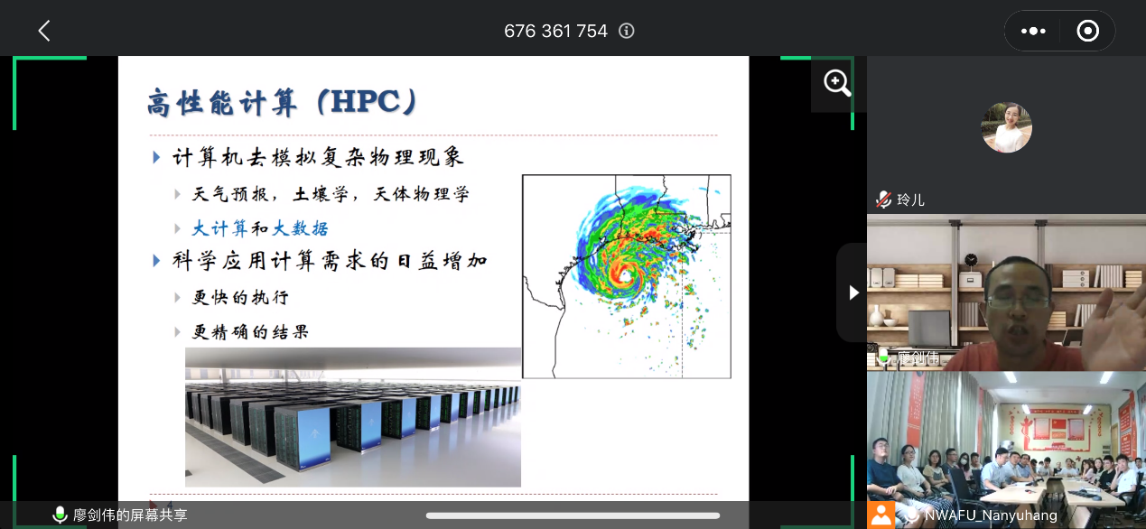 8月5日上午,西南大学廖剑伟教授应邀为91成人 师生作“高性能存储与计算”专题学术报告。会议采用腾讯会议线上开展,并进行同步直播。会议由副院长胡少军主持,党委书记党青出席,线上线下近百名师生聆听报告。