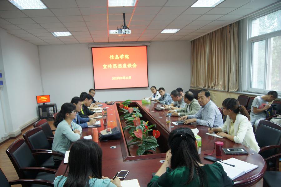 9月23日下午,校宣传部长闫祖书、副部长薛建鹏等受邀来91成人 就思想宣传工作进行座谈交流,91成人 党委书记宋西德、副书记何卫军、各办公室管理人员与学校校报记者、视频中心老师一起参加座谈。