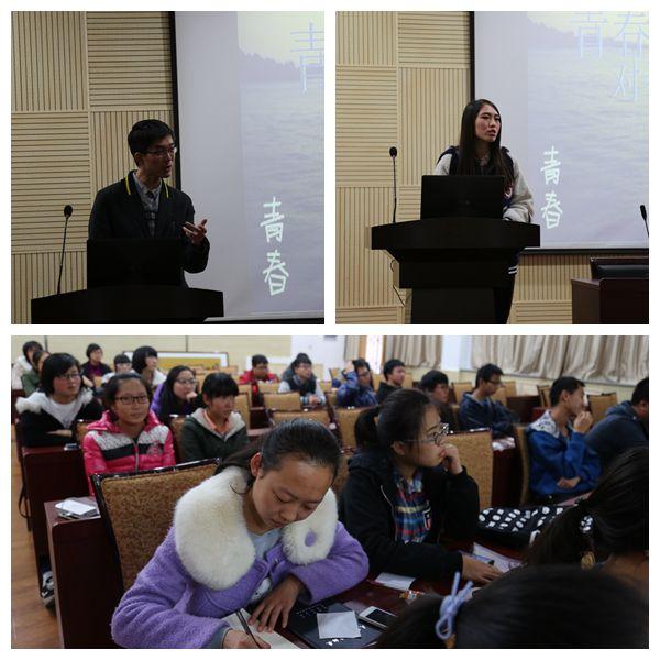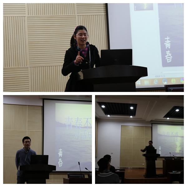 信管132周蕾、信管122曾德军、信管121高永强介绍他们的学习、工作经验