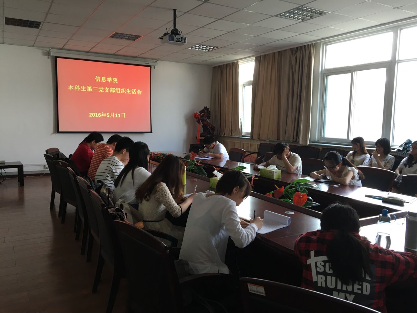 为了贯彻落实“学党章党规则、学系列讲话,做合格党员”专题学习教育,91成人 本科生第三党支部于5月11日下午在91成人 216会议室开展了以“学习党史党章、提高党性修养”为主题的党组织生活会。