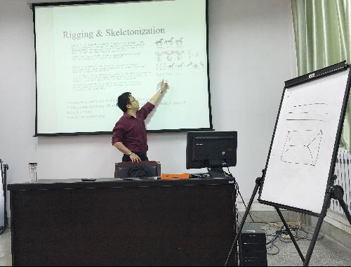 杨老师就3D物体模型、碰撞检测、三角剖分以及人物动画等方面进行了4次专题讲座。在对学生讲授理论时,以高质量的论文为出发点,其中讲了多篇SIGGRAPH上的文章,让学生可以在了解最新理论的同时,学习作者严谨的逻辑和科学的态度。杨教授生动的语言和强有力的表现形式深深地打动了课上同学,使同学们对理论形成了直观的认识。并且,杨教授积极地与学生互动,倾听学生不同的想法,激发其思考热情,使每一位学生真正参与到课程中来。