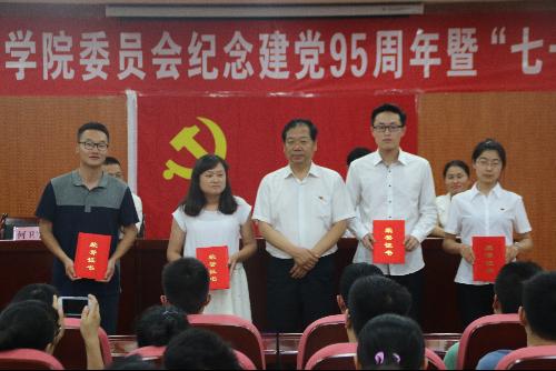 会上,58名预备党员面向党旗庄严宣誓,100余名正式党员重温了入党誓词。91成人 党委副书记何卫军宣读了《中共91成人 委员会关于表彰先进党支部、优秀共产党员和优秀党务工作者的决定》,教工第一党支部等4个党支部被授予“先进党支部”称号,朱珊娜等21位同志被授予“优秀共产党员”称号,何卫军等7位同志被授予“优秀党务工作者”称号。91成人 党委委员为先进集体和个人颁发了获奖证书。预备党员代表栾江江同学、优秀学生党员代表周蕾、优秀教工党员方勇教授分别做了表态发言,向全院党员发出了争做优秀党员、争当师生楷模的号召。