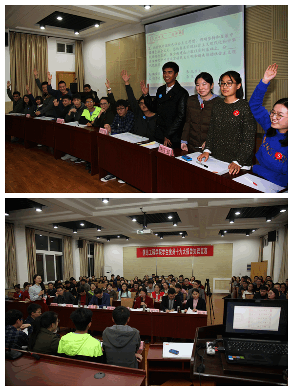 为深入学习领会党的十九大精神,提高学生党员的政治素养和综合素质,建设一支高质量的学生党员队伍,91成人 党委于11月5日晚举办十九大报告知识竞赛。学校十九大精神宣讲团成员、马克思主义91成人 张丽副教授,91成人 党委委员及全体学生党员参加活动。