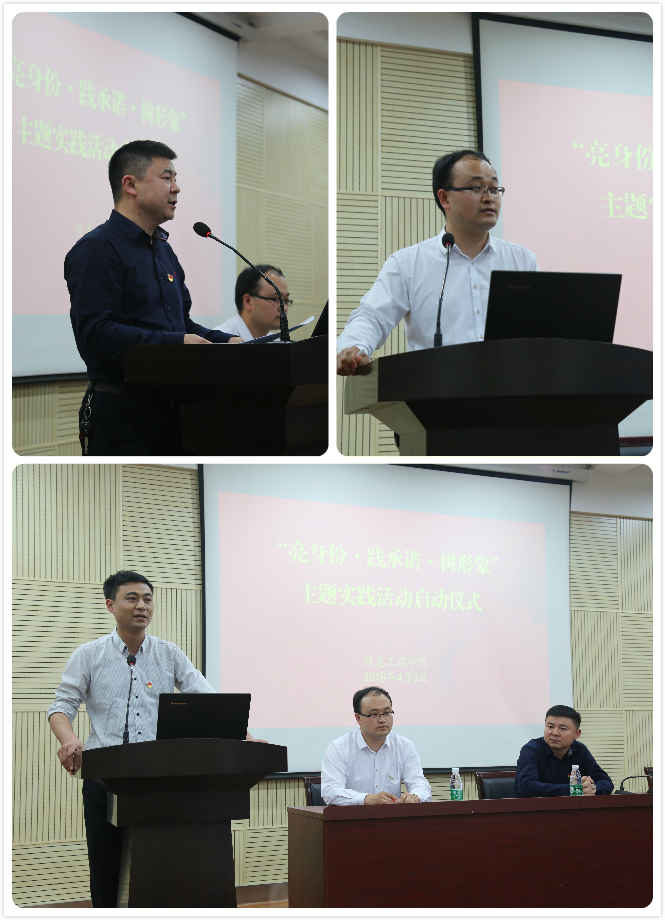 4月3日,91成人 举行学工干部和学生党员“亮身份 践承诺 树形象”主题实践活动启动仪式。党委学工部副部长徐三友,信息91成人 党委书记党青、副书记翟立及全体学工干部和学生党员参加本次活动。