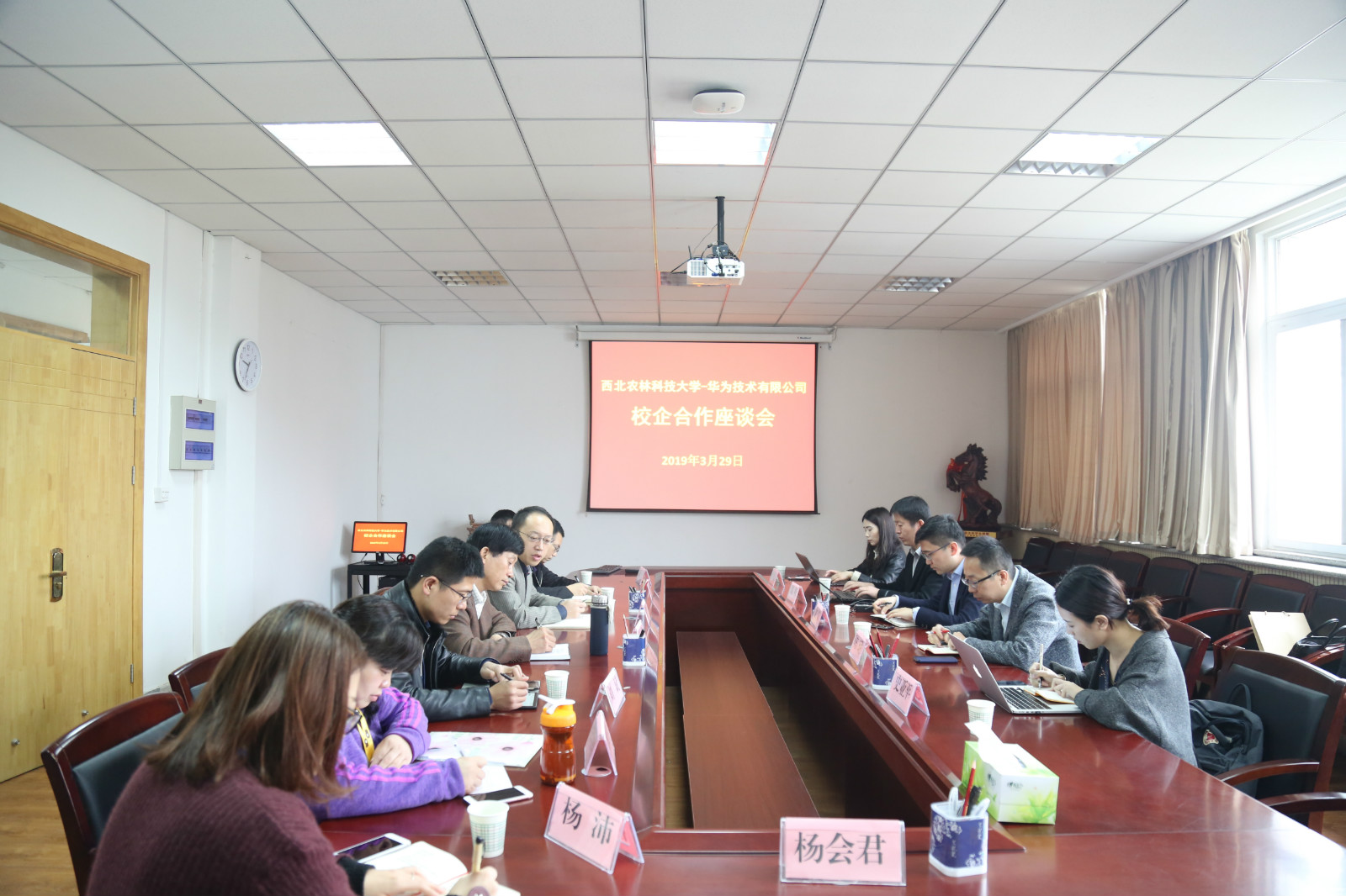 3月29日上午,华为云西北区教育行业总监文斌一行5人再次来访91成人 ,双方就人才培养深度合作开展洽谈,洽谈会由91成人 副院长张宏鸣主持。91成人 副院长胡少军和相关专业教师参加洽谈会。