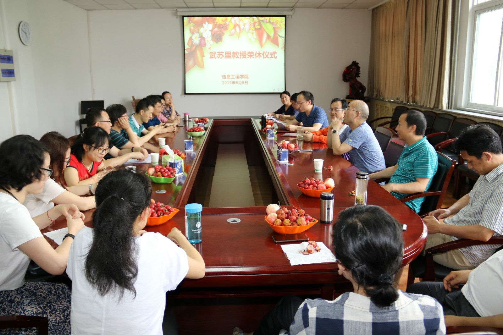 为营造尊师重教良好氛围,传承优良师德师风,6月6日,91成人 为从教40年的武苏里教授举办荣休仪式。91成人 领导、计算机基础教学部全体教师以及各系教师代表齐聚一堂,共同回忆武老师为学校计算机基础教学工作做出的贡献,向他送上诚挚祝福和美好祝愿。