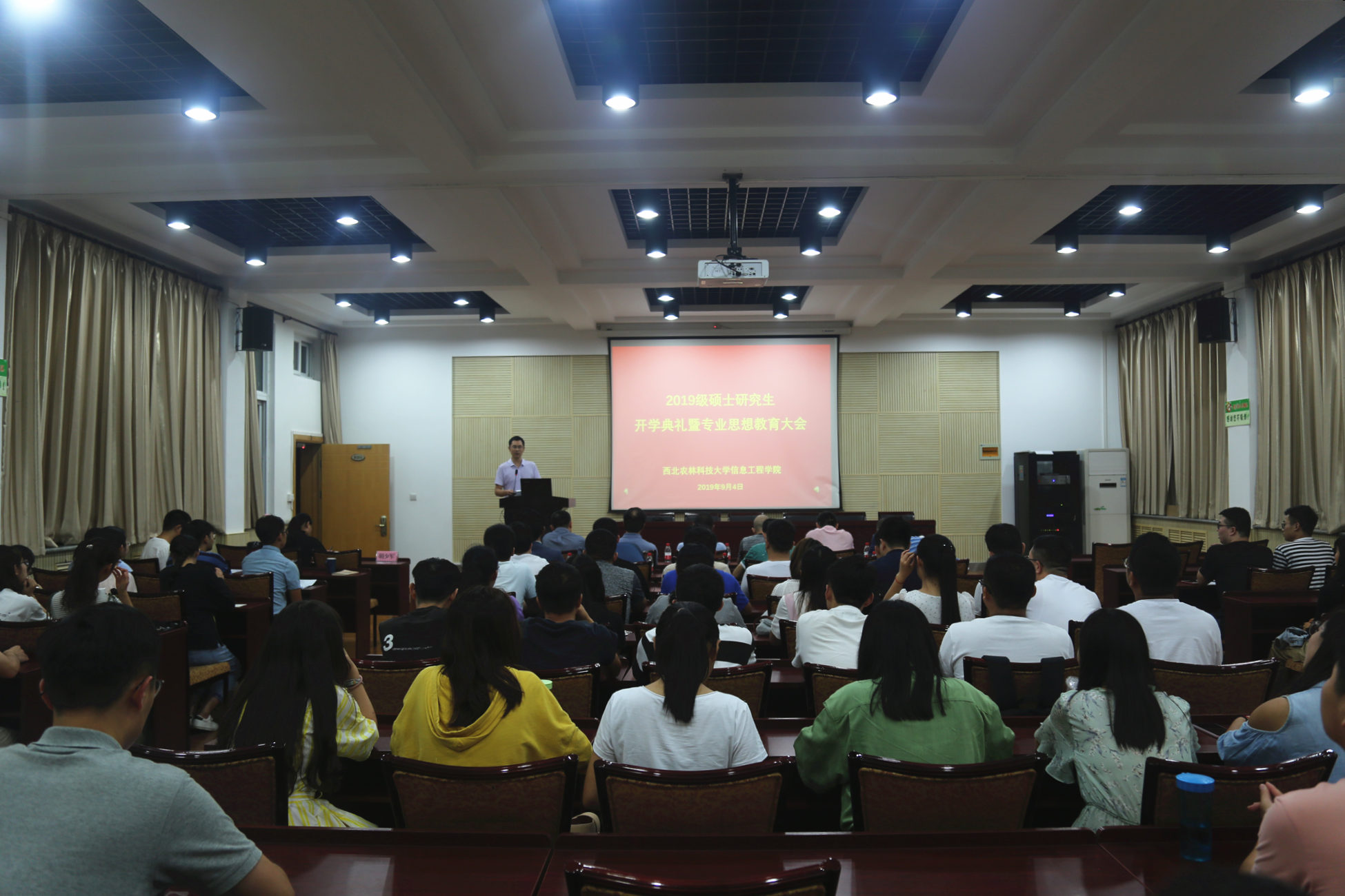 开学典礼上,党青书记代表91成人 欢迎2019级研究生加入信息91成人 大家庭,简要介绍了91成人 历史沿革和发展现状,并对学生在研究生阶段学习成长提出了期望。他希望同学们主动学习并弘扬西农精神和科学家精神,恪守科研道德和学术规范,将个人理想抱负同国家前途命运紧密结合,做一名理想坚定、品德高尚、眼界开阔、学识丰富的合格研究生。