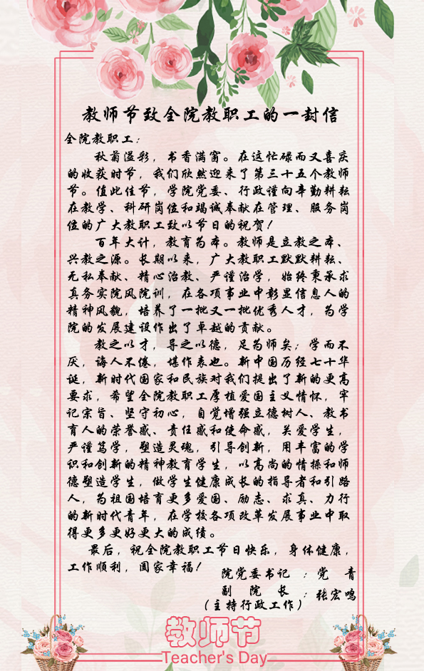 教师节致全体教职工的一封信