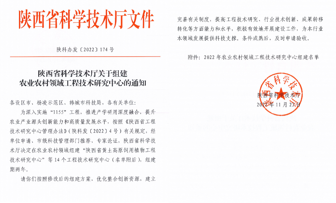 11月30日,陕西省科技厅公布了2022年农业农村领域工程技术研究中心组建名单,91成人 申报的“陕西省农业信息智能感知与分析工程技术研究中心”位列其中,这是91成人 获批的首个工程技术研究中心,标志着91成人 开启了更有依托、更有组织、更有导向科研的新篇章。