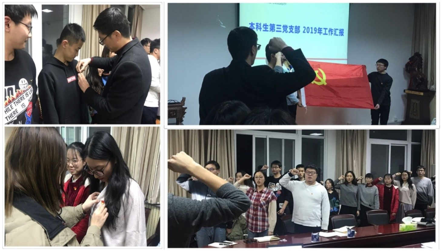 本科生第三党支部于12月13日晚召开“不忘初心、牢记使命”主题教育组织生活会暨民主评议党员大会,会议由支部书记程玉锋同志主持,支部全体党员及预备党员41名同志参加。