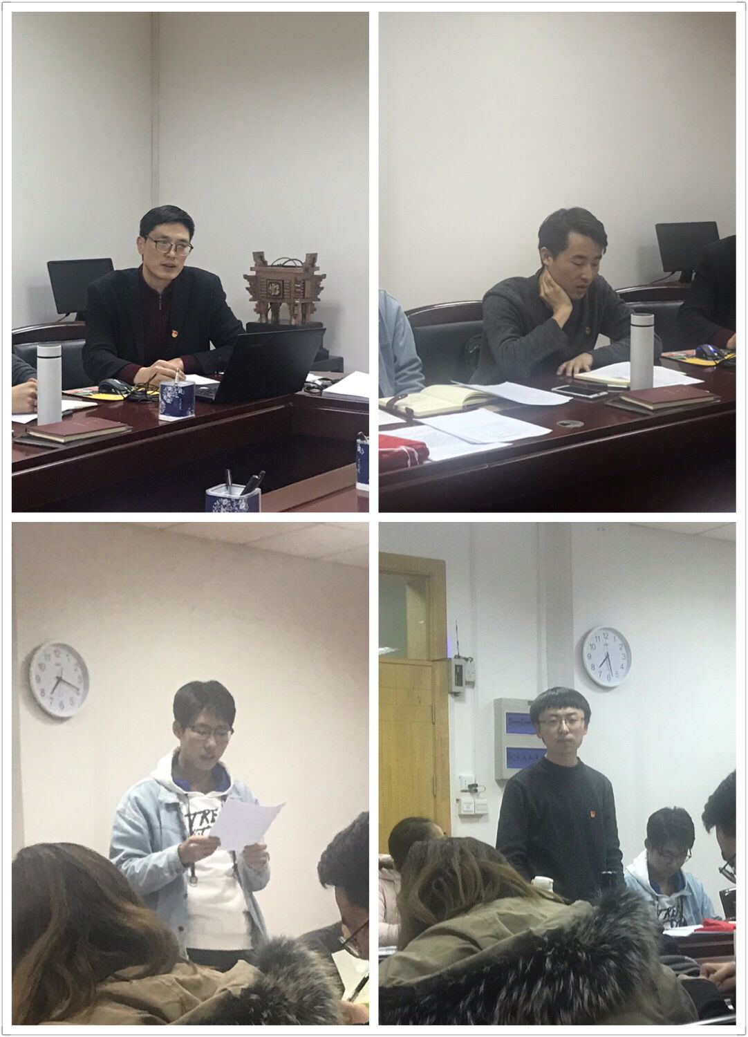 民主评议中,程玉锋围绕党员三个检视问题带头汇报个人学习感悟、存在问题并进行了自我批评,他谈到,作为党支部书记存在与同志们谈心谈话还不够,对支部个别同志思想动态把握还不够精准,支部工作职责履行还不完全到位,特别是党员档案材料填写还需加大指导力度,带动团建和引领普通学生方面作用发挥还不够深入的问题,并从思想与作风上进行了剖析,提出将率先垂范、学用结合、履职尽责,主动接受大家监督。