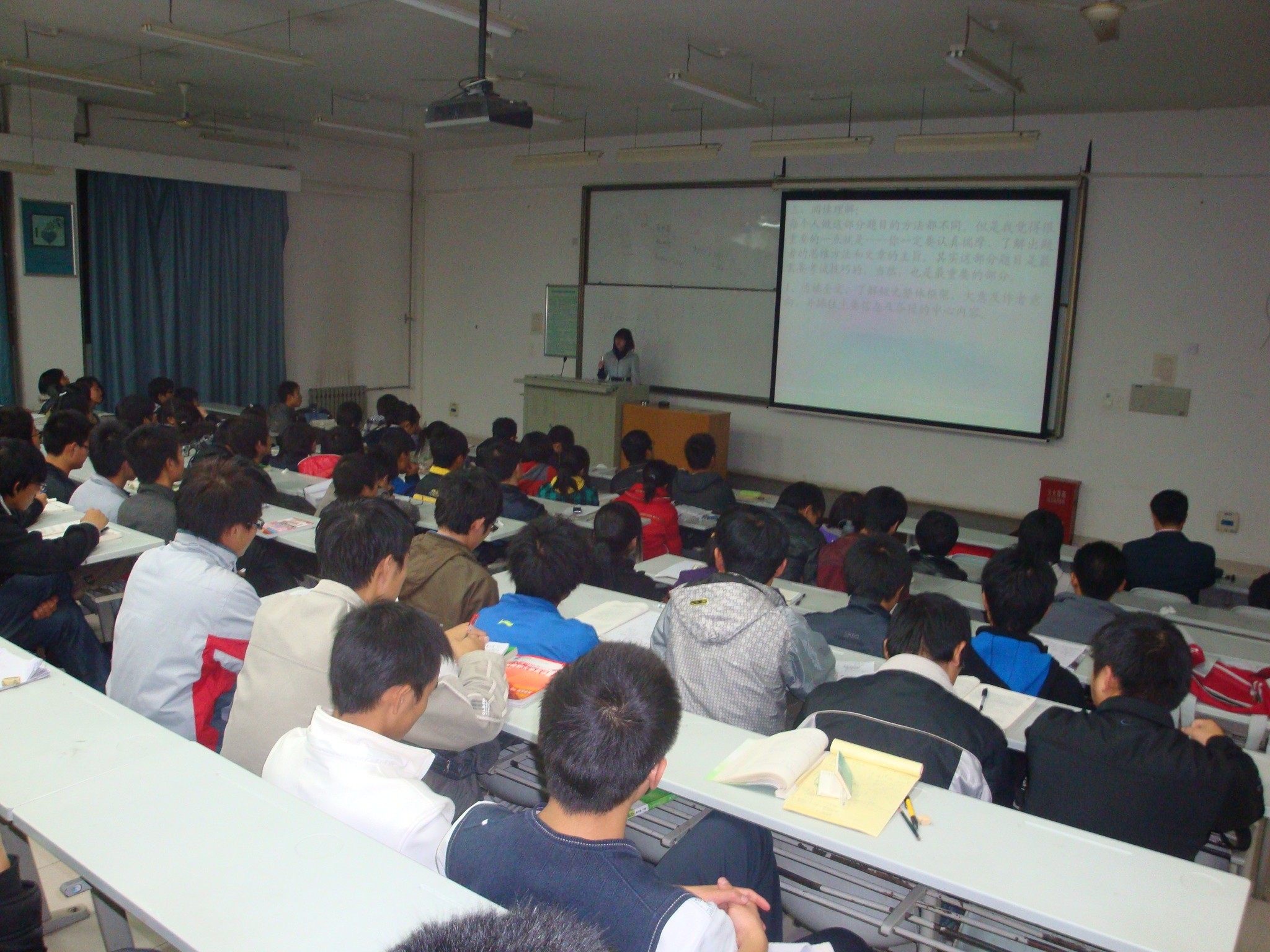 在8T01和8T03教室举行了英语四级报告会,报告会由副院长张阳教授主持,2010级全体学生听取了报告。