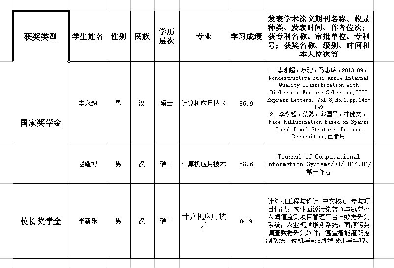 《关于做好2013-2014学年各类奖助学金评选及考核工作的通知》精神,经研究生申请,91成人 考评小组评审,现将91成人 2013--2014学年度研究生国家奖学金、校长奖学金评定结果予以公示,公示时间为10月10日-10月14日,有异议请向91成人 研究生办公室反映,过期不予受理。