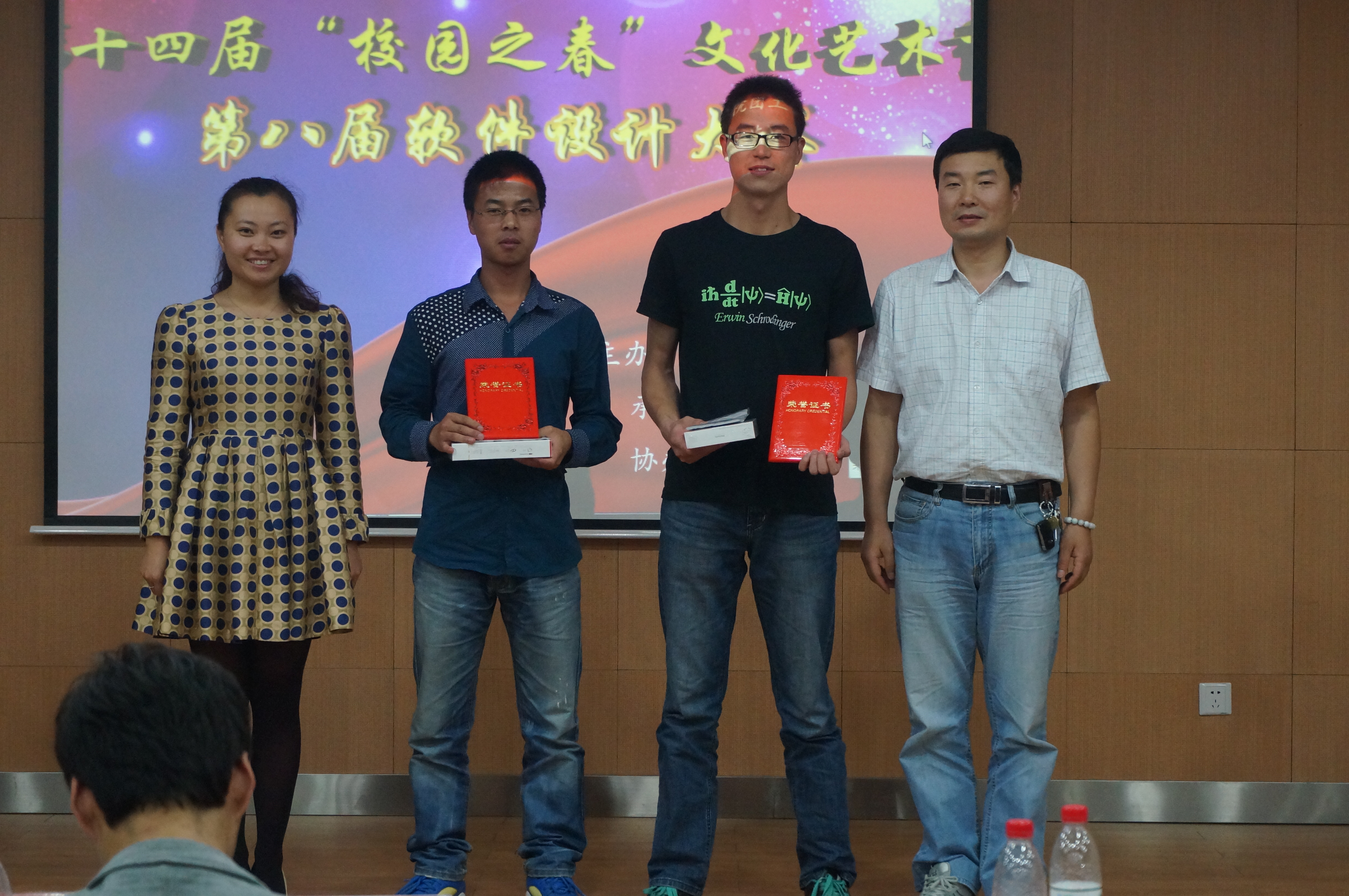 随后进入作品展示环节。入围决赛的作品范围跨度较大,技术水平较高。有既娱乐又动脑的圆盘游戏软件、有检查农药化肥施肥情况的农田图像分割软件、有贴近生活的移动办公软件、有便利的速查词典软件等等。参赛选手联系生活实际,发挥特长,用各种语言编写软件,小巧精致,实用性强。大赛中选手们详细介绍了各自的作品,无论是在人机交互上,还是功能性能上大都无可挑剔。参赛队伍的团队合作精神也在作品中充分展现,分工不同的团队成员分别负责回答评委提问中的某一方面。评委老师针对制作技术、前台平面设计、后台操作等方面给予了精彩点评,赢得了现场同学们的阵阵掌声。大赛共评出一等奖一名,二等奖二名,三等奖三名和优秀奖四名,来自信息91成人 的徐维海同学和耿涛同学以其作品《绘制函数图像软件》获得一等奖,其才华和能力获得了评委的一致称赞。