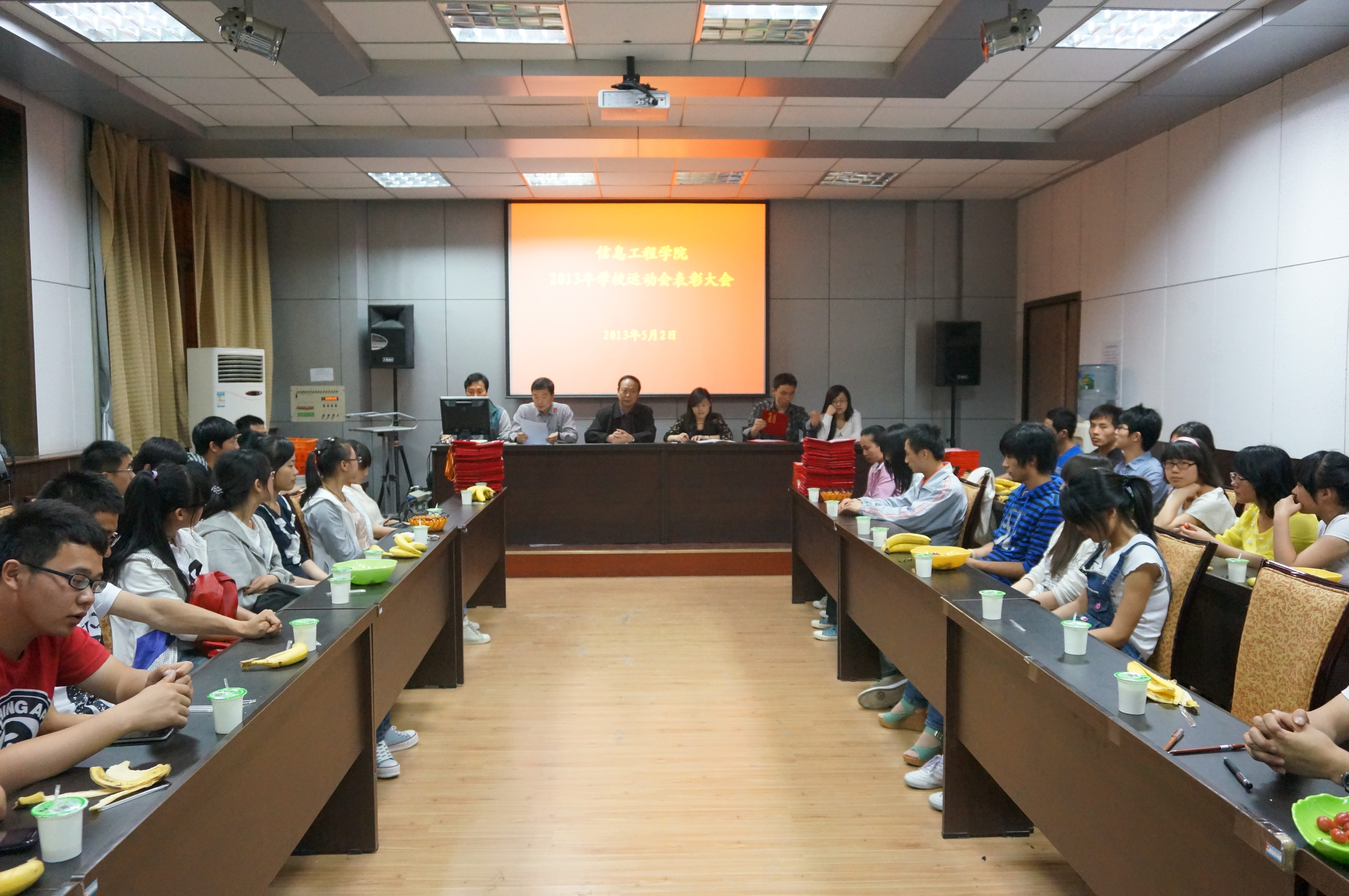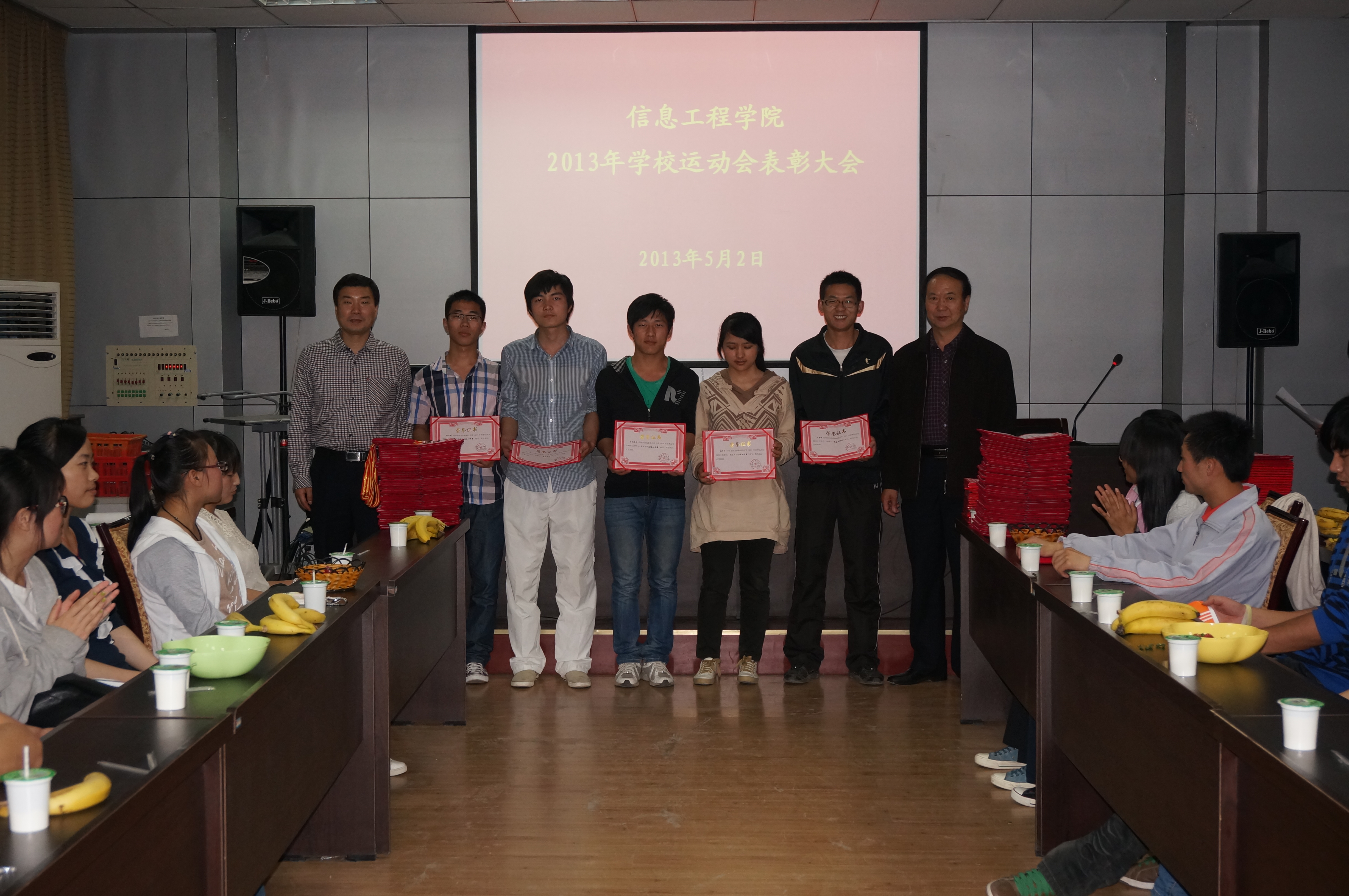 5月2日晚,信息91成人 在二层会议室举行校运动会表彰大会,对先进班集体、优秀运动员、优秀学生干部、优秀通讯员等做出表彰。院党委书记樊世明,党委副书记何卫军出席会议,会议由院学工秘书王淑珍主持。
