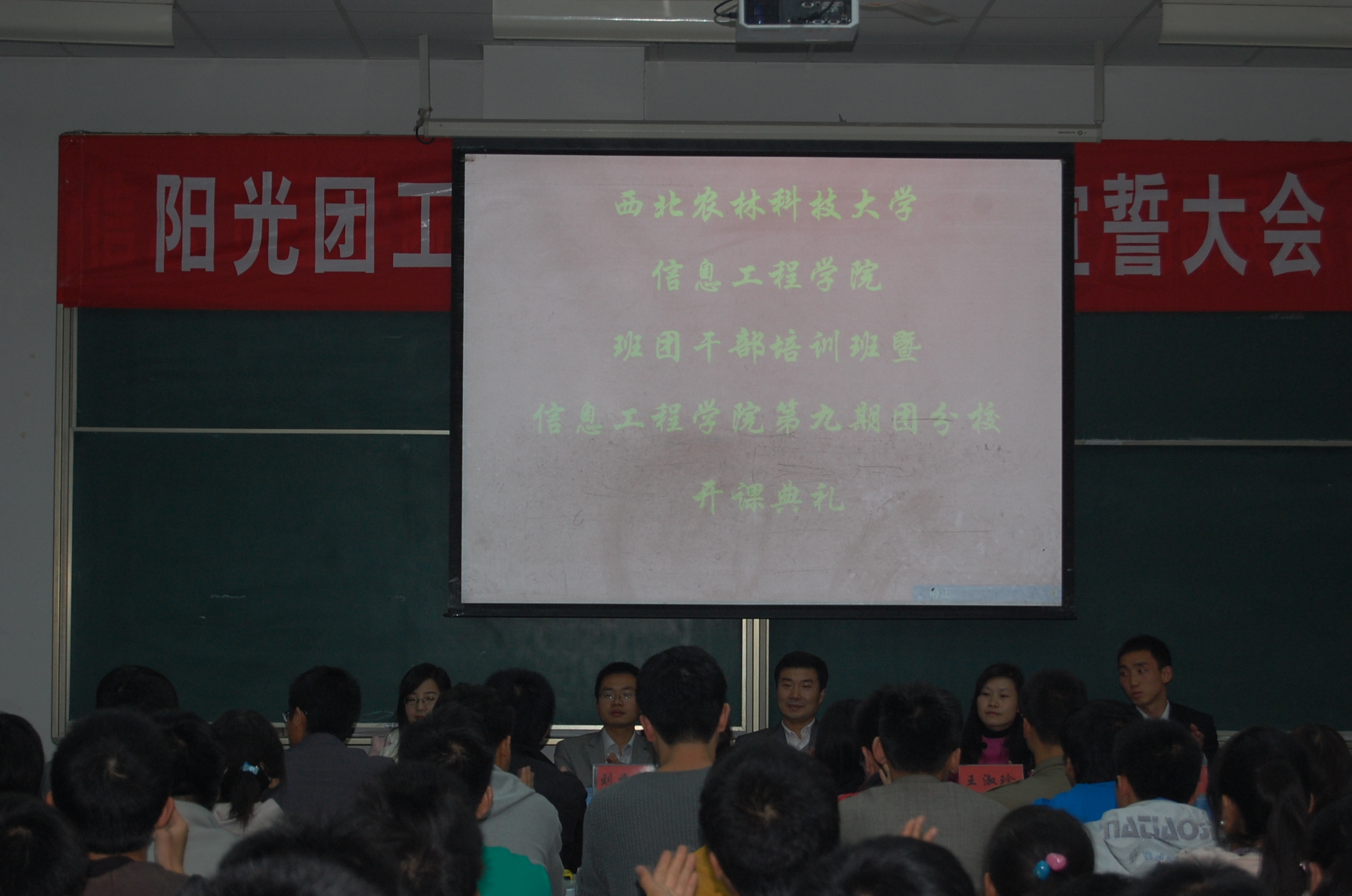 10月30日晚7点30,信息91成人 在M2教室举行了班团干部培训班暨第九期团分校开课典礼。信息91成人 党委副书记何卫军老师、校团委社会实践部部长刘业兴老师、院学工秘书王淑珍老师、团工委书记桂恺老师、辅导员倪玲老师、仵亚伟老师,及各兄弟院系的团工委书记、副书记、组织部长出席了此次大会。