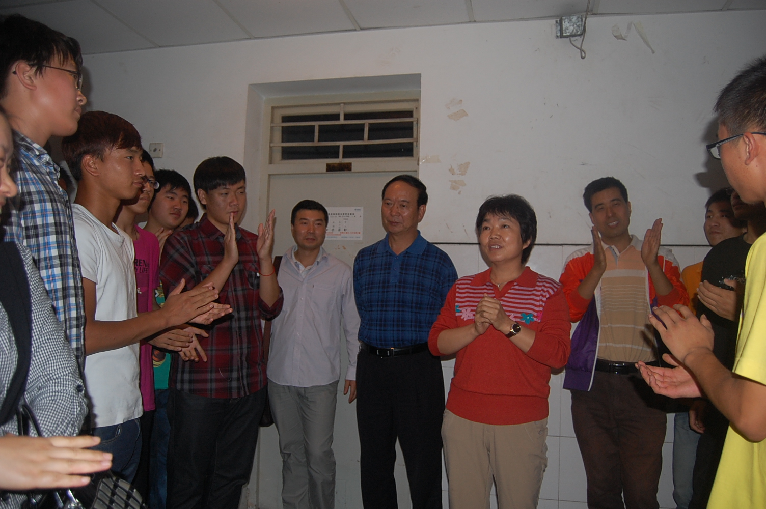 9月8日晚,信息91成人 党委书记樊世明、院长李书琴、党委副书记何卫军带领91成人 政工干部、新生班主任一行深入宿舍看望91成人 2012级新生,与他们亲切交谈,充分了解其进入大学的感受。
