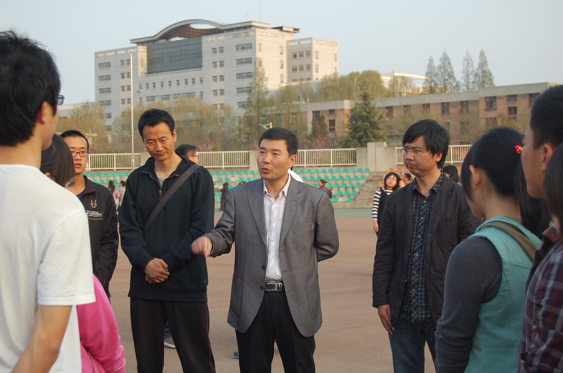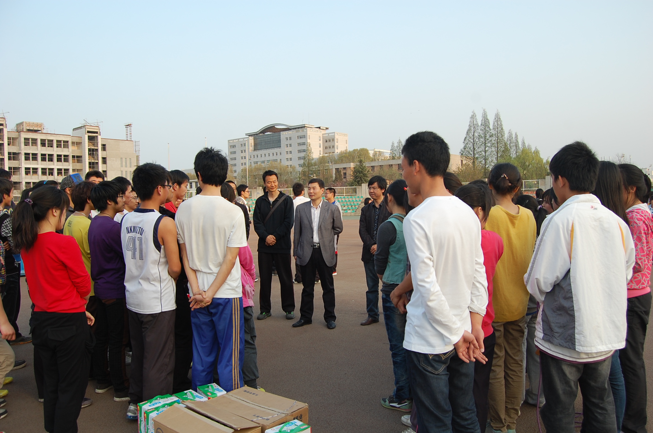 4月9日下午6:00,91成人 党委副书记何卫军携带营养品赴田径场慰问了积极备战校运会的运动员们。91成人 辅导员谷申杰老师和倪玲老师陪同参加了此次活动。