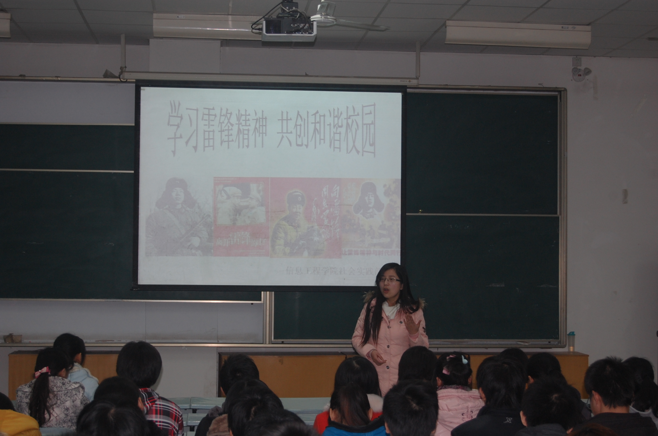 桂恺老师在影片开始前做了简短介绍,他指出在雷锋同志逝世50周年及毛泽东同志为雷锋同志题词49周年之际,观看影片学习雷锋精神具有良好的教育意义。雷锋精神曾经深深影响他的世界观、人生观、价值观,该影片在故事结构、叙事手法等方面均属上乘,希望同学认真观看。
