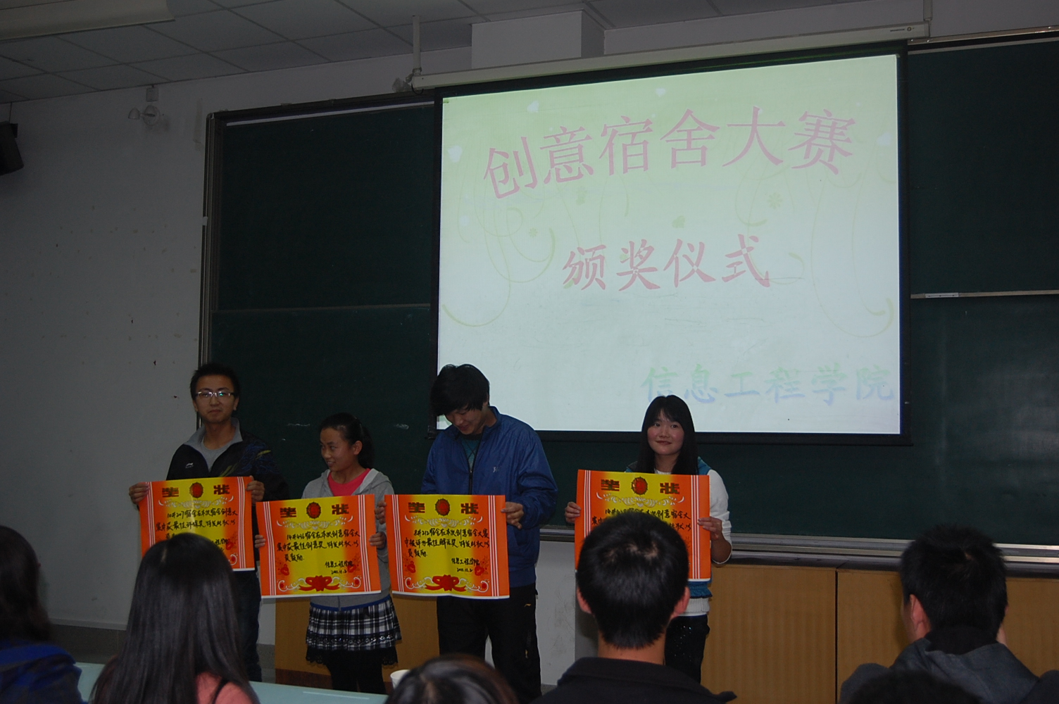 11月2日下午,91成人 在M2教室举行了2011级“创意宿舍”大赛颁奖仪式,辅导员倪玲老师、校学生会生活部副部长付婷婷以及到场的各院生活部部长为15个获奖宿舍颁发了奖状。