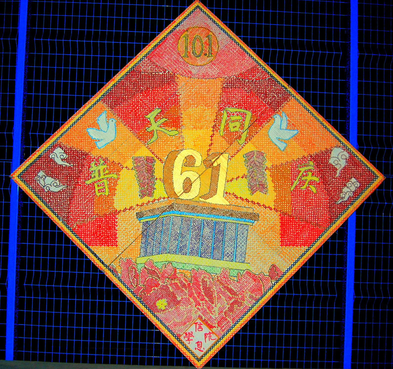 的同学们以十字绣的形式为创意,将两张宣传板拼在一起,画出100×100格子,做为“十字格布”;然后仿照十字绣中经纬交织搭十字的方法,画出相关的图案和文字。整个宣传板共十余人历时两天两夜零一下午制作完成。