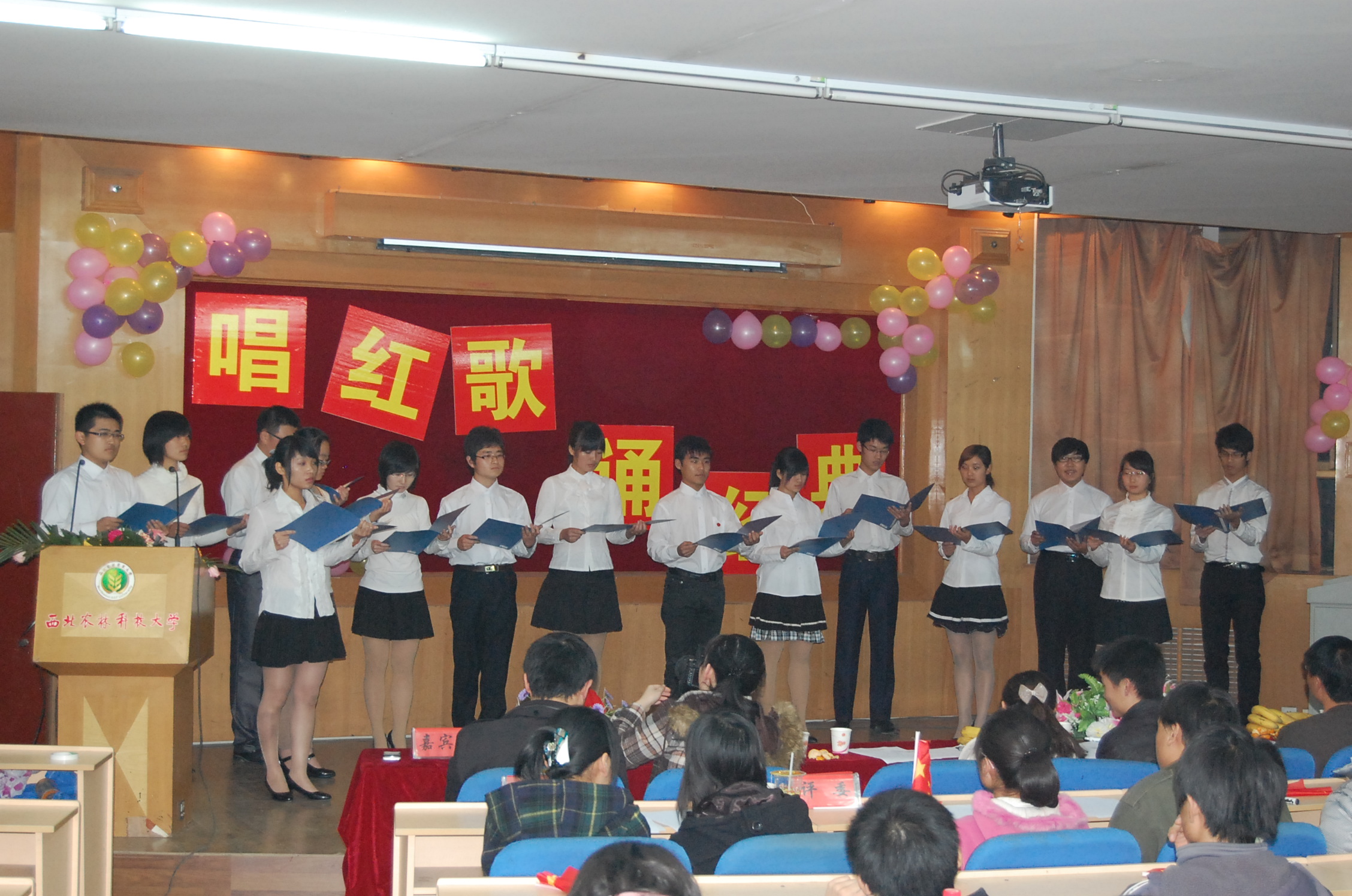 11月28日晚在七号楼二层举办的金秋文化艺术节之“唱红歌,诵经典”决赛中,91成人