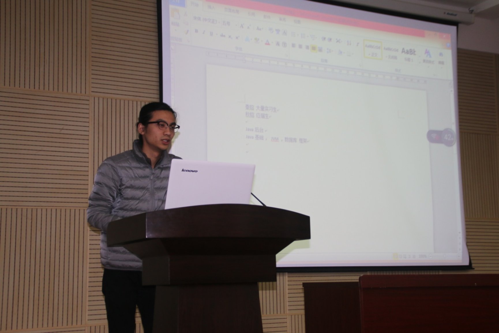 交流会气氛融洽,台上的毕业生侃侃而谈,风俗幽默,台下的同学反应热烈,纷纷提出就业相关问题,会场不断时常响起同学们的掌声。