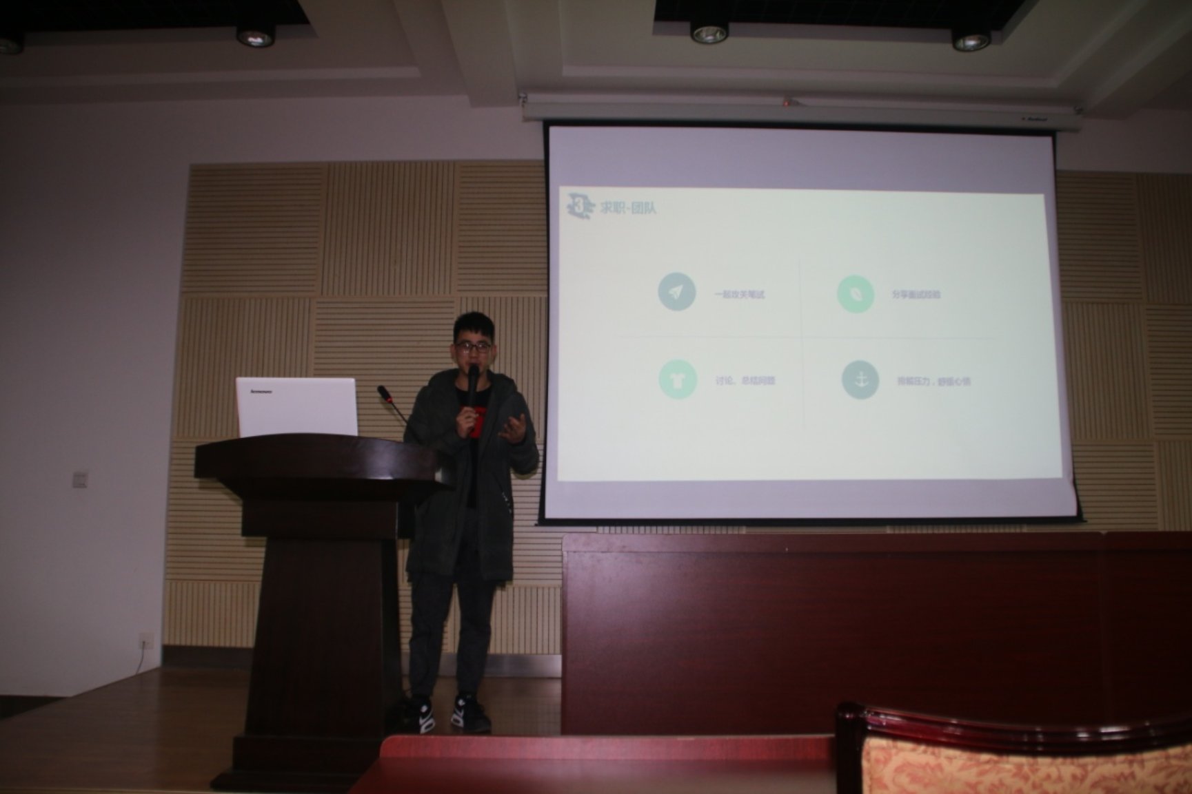 研究生会在副203会议室举办了研究生就业经验分享会,毕业研究生代表围绕就业意向、企业笔试经验、面试经验等内容与同学交流,会议得到同学们的积极响应,会场座无虚席。