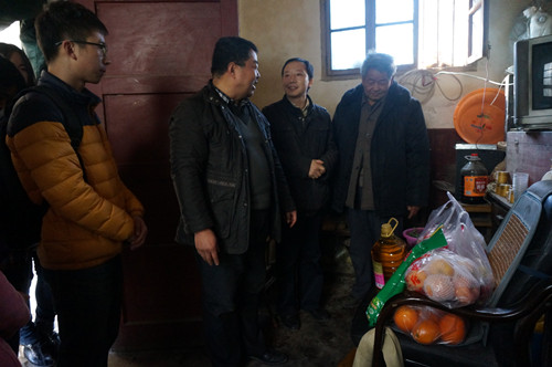 1月18日下午,91成人 张志勇老师带领91成人 学生看望了姚南村的安宏发老人。老人今年74岁,老伴早年去逝,膝下无子女,独自生活,无工作,无经济来源,生活十分艰辛。在村主任的带领下,老师与同学们前往老人家中,为老人带来一些日常生活用品与食物,并询问了老人的日常起居与身体状况。