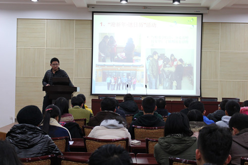 大会伊始,来自园艺91成人 的第九届十佳村助任洪毅向我们介绍了在他担任村助的这一年中他的收获和他如何与他的团队去工作的经历。在任洪毅同学的演讲过程 中,他向大一热衷与参加志愿活动的同学提出许多建议,对积极参选村助的同学给予他们以鼓励,告诉他们在这一年中可能会比较辛苦但是自身收获将是巨大的。