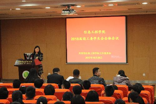 2017年10月25日下午,91成人 2018届团工委学生会全体会议在北绣活动中心北报告厅正式召开。91成人 党委副书记翟立,学工办秘书王淑珍,团工委书记倪玲,16级辅导员李超琼,17级辅导员闫一凡及学生会全体成员参加了本次会议。