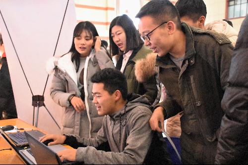 信息91成人 充分立足91成人 的学科基础、发挥学科特色,参展作品中不乏高科技、高水平的作品,其中主要是动漫设计大赛,软件大赛的优秀作品以及一些学生们自己设计的游戏。动漫设计大赛的作品将中国梦融入我们的现实生活与Flash动画中,通过动漫作品阐述属于我们的中国梦,令现场观众们赞叹不已。同时还有学生们用各种软件制作的游戏,如《3D坦克大战》,这是一款简易版的射击游戏,大家可以在里面驰骋战场,奋勇杀敌。此外,《3D视觉岛屿游戏》,也是一款基于视觉立体的游戏,操作者可以在山清水秀的岛屿上尽情遨游,在享受3D视角的同时仿佛置身人间仙境,为观众们带来了强烈的视觉冲击。展览过程中,信息91成人 团工委书记倪玲也在现场认真观看参展品并与学生热情交流,积极讨论,大家脸上都洋溢着喜悦的笑容。