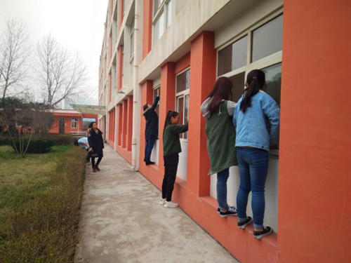 进入福利院,提前做好分工工作的同学们主动走向各自负责的地点,其中几位同学承担起义务为福利院清扫的活动。